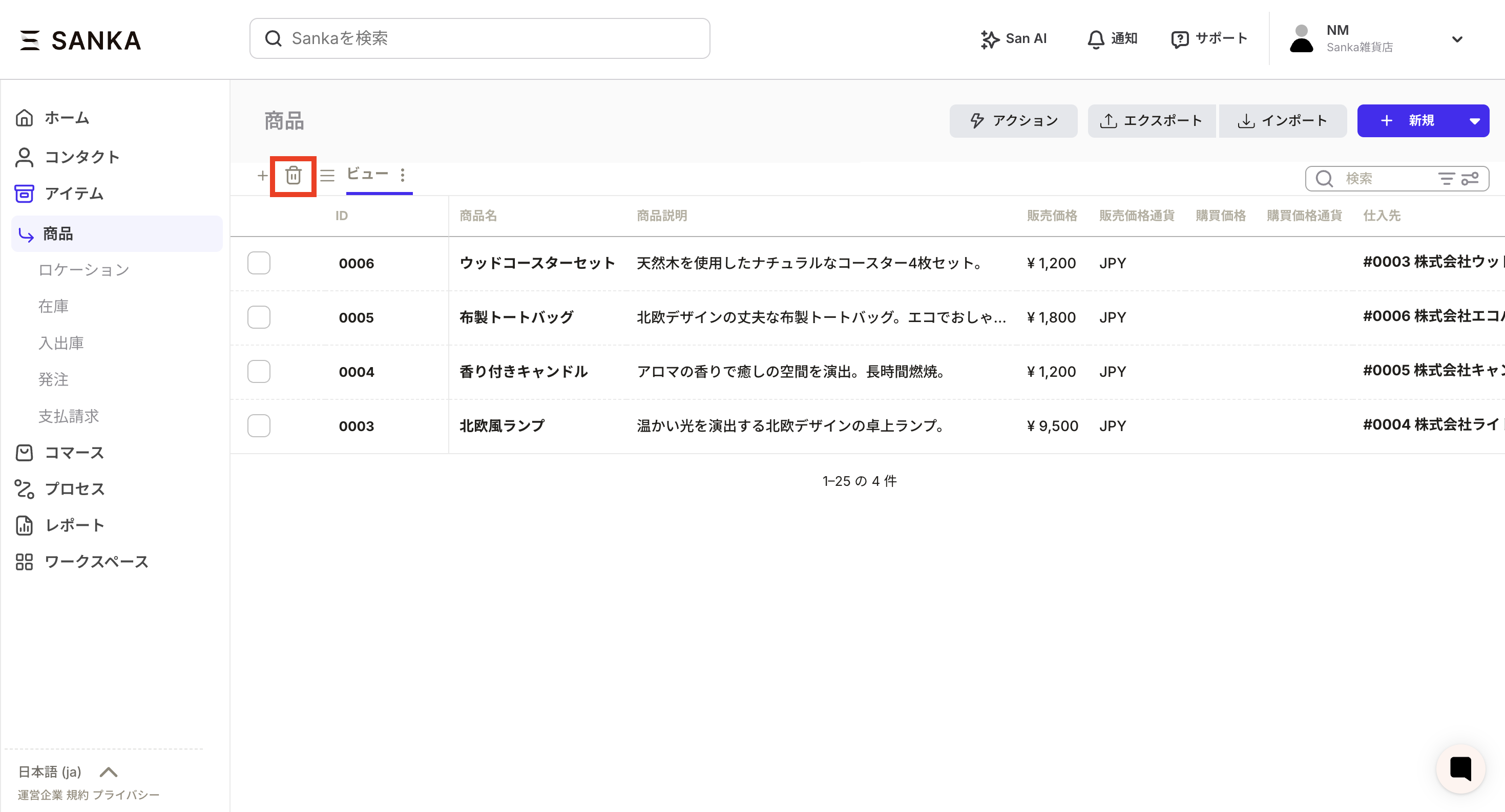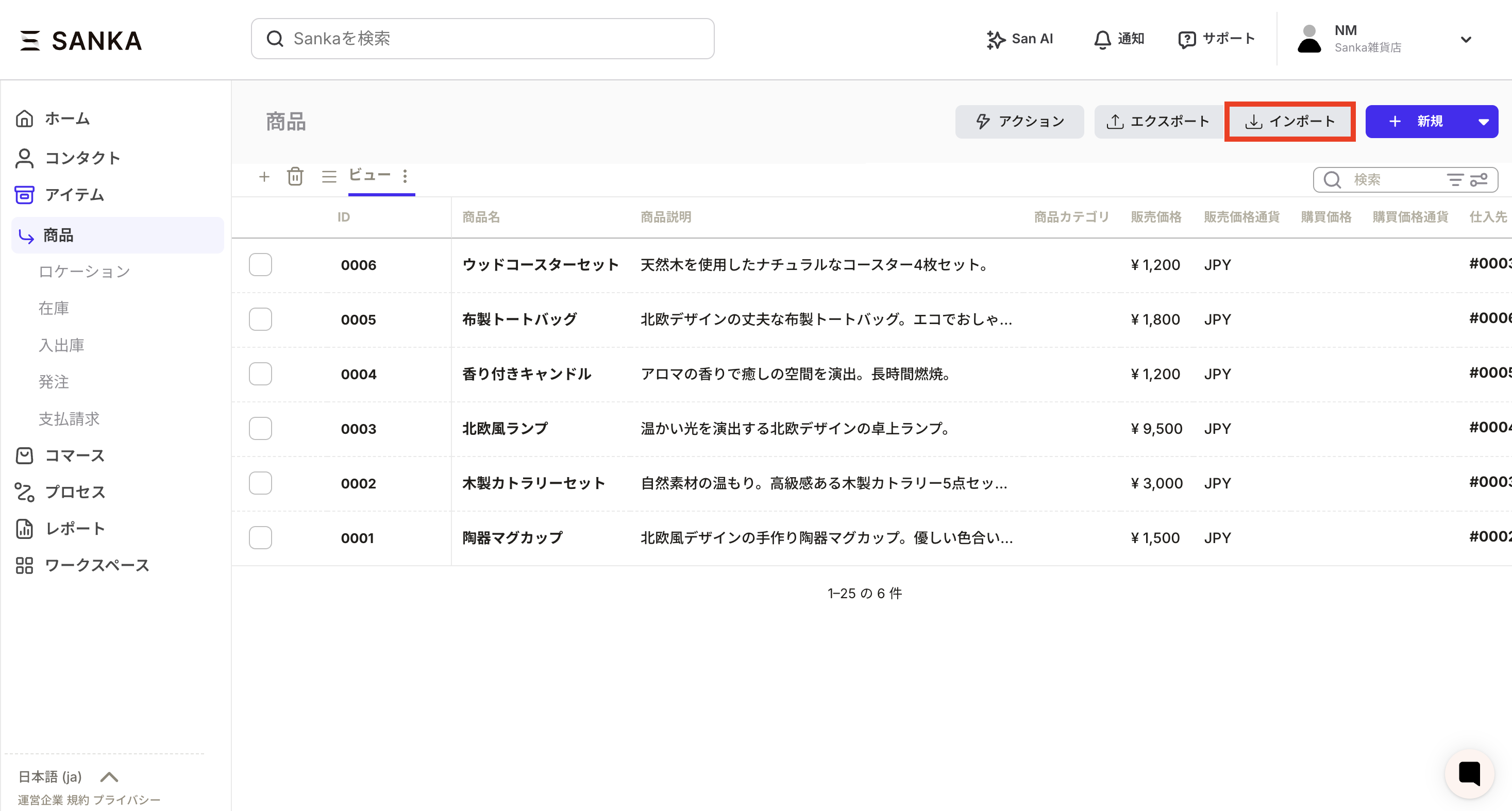 必要事項:商品ID(Sanka自動採番のIDまたは独自で設定されたユニークID)