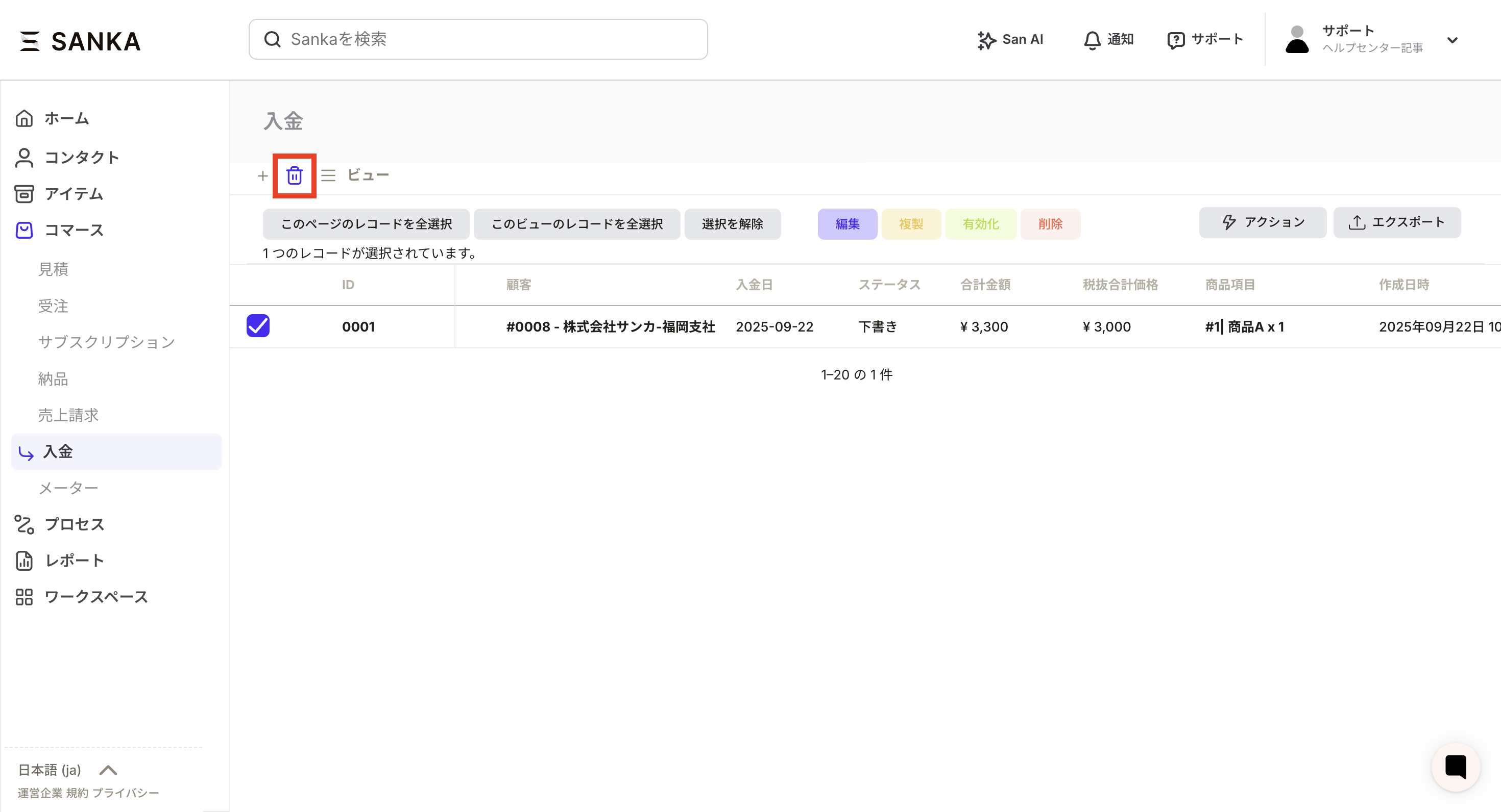 記録の保管:Sanka上で入金記録を一元管理することで、将来の参照・報告に活用できます。